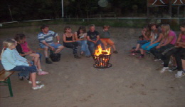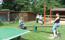 mit verschiedenen Spielgeräten, Kletterturm mit Rutsche, Korbball, Tischtennis-Turnier etc. ein Freizeitpavillon, eine lustige Grill-Party , Lagerfeuer, der beliebte
